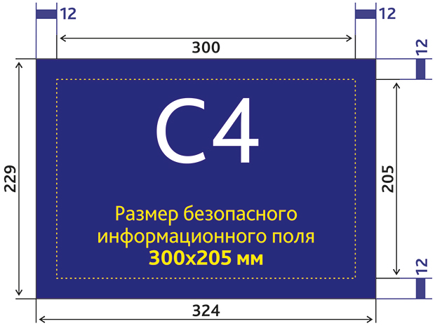 Размер безопасного информационного поля 300x205 мм (где будет текст, логотип);