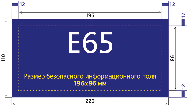 Размер безопасного информационного поля 196x86 мм (где будет текст, логотип);