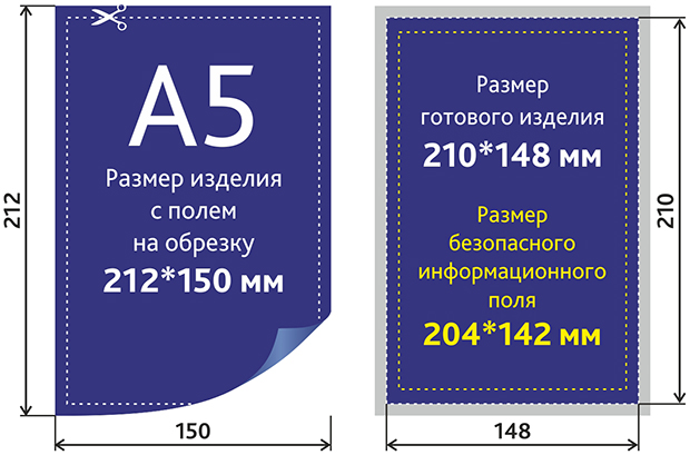 Размер флаера с припусками на обрез 212x150 мм (т.е. по 1 мм с каждого края);