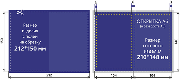 Размер готовой открытки 210x148 мм;