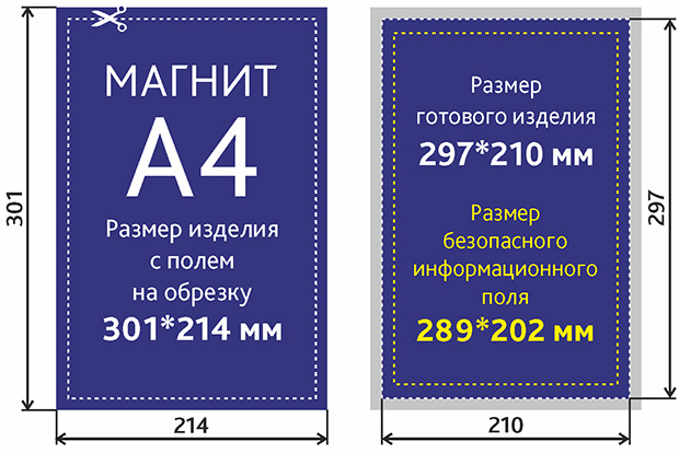 Размер магнита с припусками на обрез 301x214 мм (т.е. по 2 мм с каждого края);